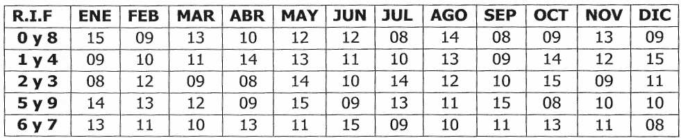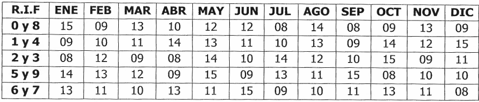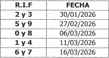 Los Sujetos Pasivos Especiales notificados de esa condición en forma expresa por el SENIAT, deberán presentar las declaraciones y efectuar los respectivos pagos de los impuestos que se indican a continuación, según el último dígito del número de su Registro Único de Información Fiscal (RIF) y en las fechas de vencimiento del calendario para el año 2026 establecido como sigue: